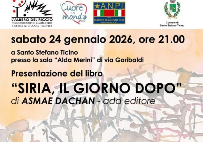 Sabato 24 gennaio, alle ore 21, la Sala Alda Merini di via Garibaldi a Santo Stefano Ticino ospiterà un importante appuntamento culturale e di approfondimento, organizzato dal gruppo “L’albero del riccio”. Al centro della serata la presentazione del libro “Siria, il giorno dopo” della giornalista e scrittrice siriana Asmae Dachan. L’incontro vedrà la partecipazione dell’autrice, che dialogherà con il giornalista Enrico Fovanna, offrendo al pubblico uno sguardo diretto e consapevole su uno dei conflitti più drammatici del nostro tempo.