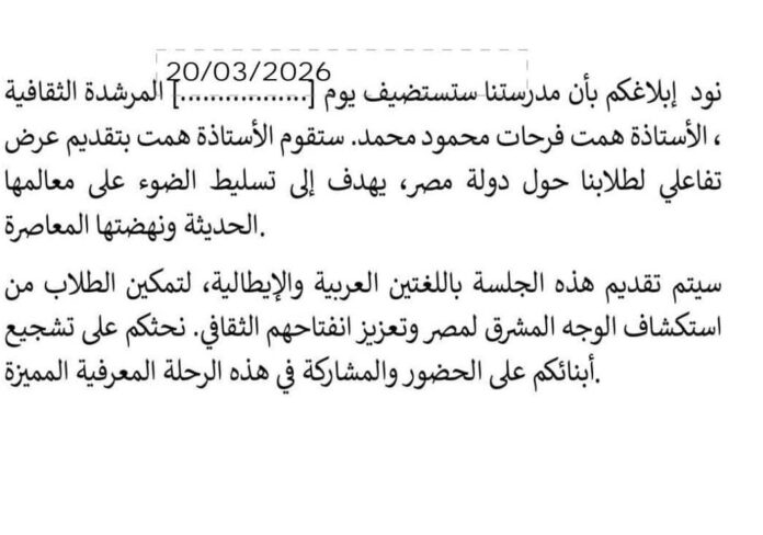 “In una scuola dell’infanzia ad Abbiategrasso un’iniziativa didattica sta suscitando giuste lamentele dei genitori. Per domani è infatti previsto un incontro con una mediatrice culturale araba per una lezione sull’Egitto in doppia lingua, italiano e arabo. Si tratta di un’attività proposta a bambini di 3 anni che proprio adesso incominciano a imparare l’italiano.