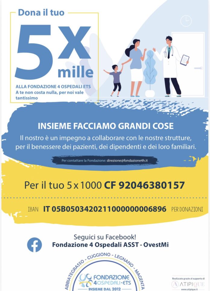 Dona il tuo 5 PER MILLE alla Fondazione degli Ospedali di Abbiategrasso, Cuggiono, Legnano, Magenta Onlus (c.f. 92046380157)