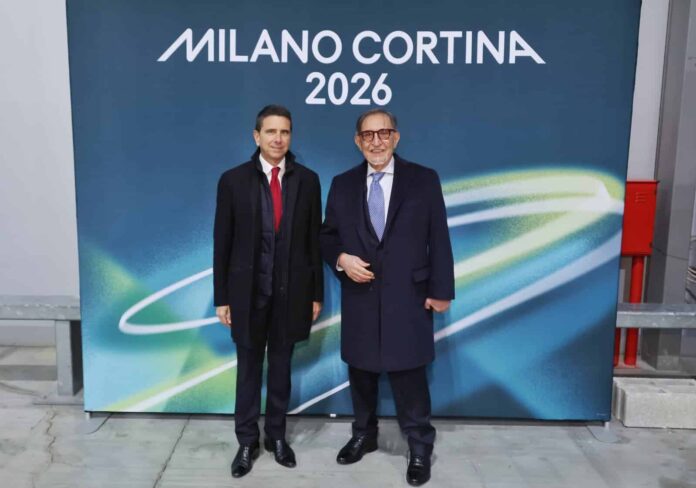 durante la visita delle venue delle Olimpiadi di Milano Cortina
