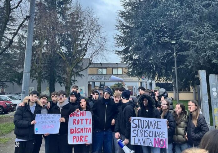 Questa mattina ragazze e ragazzi dell’Istituto superiore Torno di Castano Primo hanno incrociato le braccia e sono scesi in strada per protestare contro le condizioni dell’edificio scolastico. Davanti ai cancelli dell’istituto, gli studenti si sono radunati con cartelli eloquenti: “Studiare sì, rischiare la vita no”, “Il diritto all’istruzione è garantito in condizioni di sicurezza”, “Bagni rotti, dignità pure”. Al centro della mobilitazione, secondo quanto riferiscono gli stessi studenti, ci sarebbero gravi problemi strutturali e di manutenzione che renderebbero difficile – e in alcuni casi pericoloso – lo svolgimento delle lezioni.