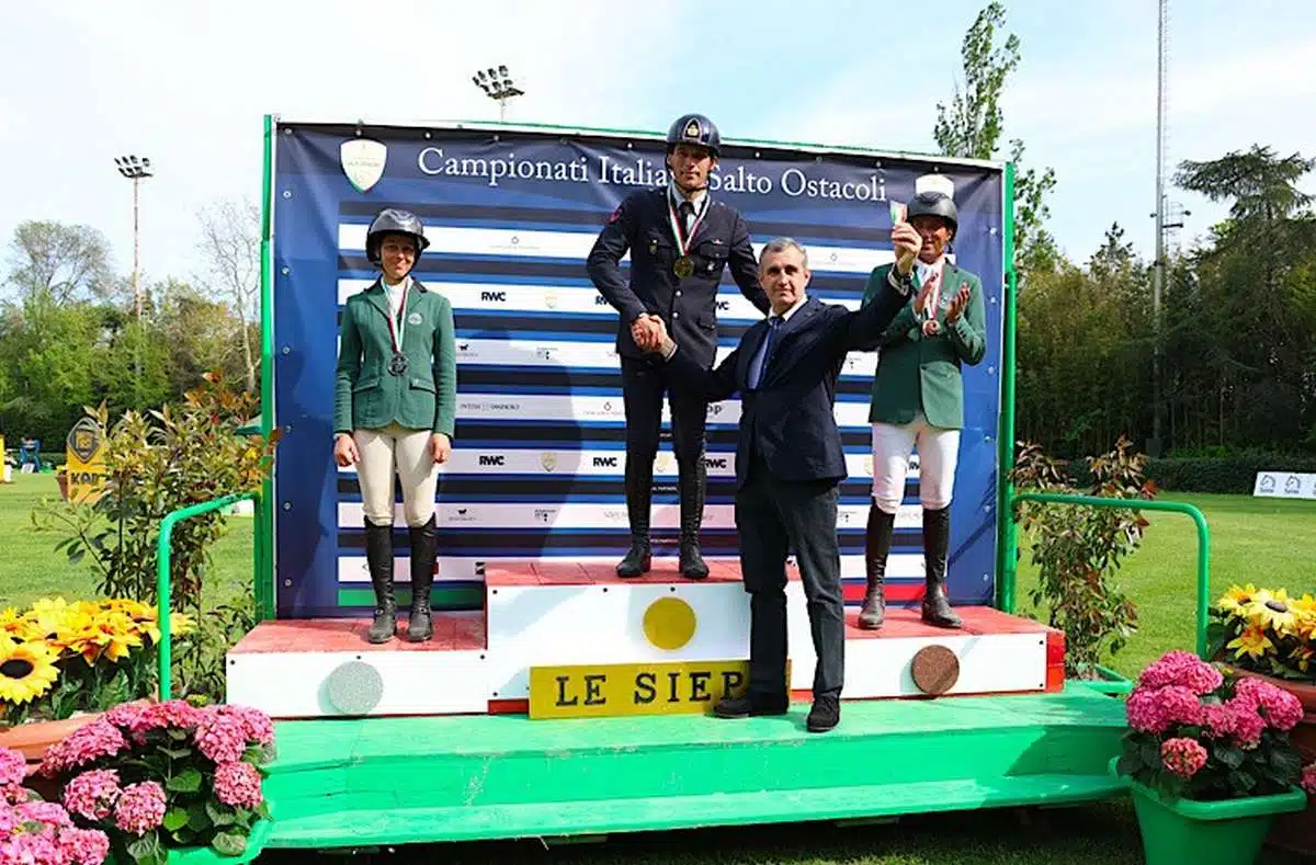 CERVIA (ITALPRESS) – Giampiero Garofalo, in sella a Max Van Lentz Schrans, è il numero uno del campionato italiano assoluto di salto ostacoli 2023. Il primo aviere scelto ha conquistato la vittoria della più importante manifestazione nazionale di interesse federale del salto ostacoli nel campo verde del Circolo Ippico Le Siepi di Cervia (Ra). Già in quinta posizione dopo la prima giornata di gare, l’atleta dell’Aeronautica Militare ha ottenuto la vetta della classifica, dopo due prove pressochè perfette, prive di penalità agli ostacoli (3.35 penalità in totale) nella gara a due percorsi con ostacoli di un 1 metro e sessanta centimetri e disegnata dallo Chef de Piste Uliano Vezzani. La medaglia d’argento è andata a Michol Del Signore in sella al pezzato baio Irish Coffee (14.14 penalità in totale), bronzo per Francesco Turturiello, già nei migliori tre dell’edizione 2022, che torna sul podio del campionato assoluto in sella a Made In’t Ruytershof (14.15 penalità in totale). “Questa medaglia – ha commentato Garofalo – è una bellissima soddisfazione. Sono felice di essere riuscito ad ottenere la vittoria di questo appuntamento così prestigioso, proprio in occasione della mia prima partecipazione al campionato assoluto. Il cavallo ha saltato molto bene, ci attende una stagione impegnativa, anche in vista dello Csio di Roma, dove avrò l’opportunità di tornare a saltare grazie a questo risultato”. “E’ stato un bellissimo campionato – ha dichiarato il presidente Fise Marco Di Paola, che ha consegnato le medaglie nella cerimonia di premiazione – nel quale abbiamo visto le nostre amazzoni e i nostri cavalieri in azione per conquistare il podio. Complimenti ai nostri atleti che si sono misurati sui percorsi disegnati da Uliano Vezzani e che oggi, oltre alle medaglie di questo importante campionato italiano, hanno ottenuto anche la qualifica per lo Csio di Roma”. Il podio del campionato d’Italia, infatti, rende ufficialmente noti i primi tre binomi che prenderanno parte alla 90^ edizione dello Csio di Roma-Piazza di Siena (25-28 maggio) secondo quanto previsto dal Programma del Dipartimento salto ostacoli della Federazione Italiana Sport Equestri: il vincitore del campionato assoluto sarà, infatti, inserito nella lista dei cavalieri italiani con diritto di accedere, previa qualifica qualora prevista, al Gran Premio, mentre il secondo ed il terzo, previa valutazione del Selezionatore, saranno inseriti o nella lista con possibilità di accesso al Gran Premio o nella lista dei cavalieri che non avranno accesso al Gran Premio. Ieri, a Cervia, anche la visita del presidente del Coni Giovanni Malagò, che, dopo aver premiato le migliori classificate della prima prova del Campionato Amazzoni, ha consegnato un attestato speciale a Lalla Novo, la “Dottoressa” del mondo equestre, presidente del Comitato Organizzatore Le Siepi di Cervia e storica campionessa di salto ostacoli. Malagò, insieme a Di Paola, ha conferito a Lalla Novo uno speciale riconoscimento: il Consiglio Federale l’ha infatti nominata Socio Benemerito, in un emozionante momento per la sua carriera, di atleta e di dirigente sportivo, per celebrare il suo fondamentale contributo nel mondo equestre. “Sono felice di essere qui – ha dichiarato Malagò – perchè vedo un’atmosfera molto bella: atleti e appassionati di tutte le età, cavalli e famiglie insieme in un connubio di natura, agonismo, grande sport. Questo evento, non solo ci farà conoscere migliori binomi d’Italia per il 2023, ma offrirà ad amazzoni e cavalieri la possibilità di realizzare il sogno di provare ad ottenere un risultato sul campo di Piazza di Siena, che una competizione di grande prestigio e fascino, che ci porta anche nella fase delle qualifiche olimpiche, sia individuali che di squadra, un aspetto che ci interessa particolarmente”. Domani, domenica, le finali di tutte le altre competizioni in programma: il Criterium Seniores 2° grado, 1° grado e brevetti, Criterium Amazzoni 1° e 2° grado, il Trofeo Amazzoni 1° grado, Trofeo Senior 1° grado, Trofeo Senior Brevetti, Trofeo Senior Avviamento Brevetti e la prima tappa di selezione per i Campionati d’Europa Ambassador.