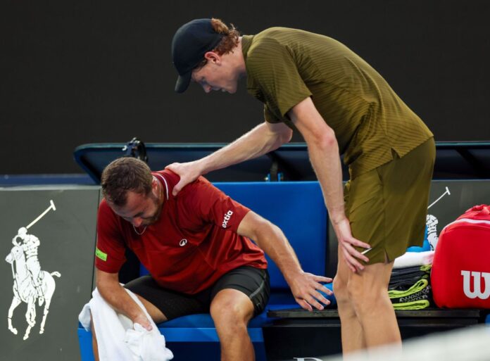 MELBOURNE (AUSTRALIA) (ITALPRESS) – Jannik Sinner avanza al secondo turno degli Australian Open, primo Slam della stagione che lo ha visto vincitore nelle ultime due edizioni. L’azzurro era avanti 6-2 6-1 dopo 68 minuti di gioco quando il suo rivale, il francese Hugo Gaston, numero 93 del ranking, è stato costretto a ritirarsi. Nel secondo turno Sinner, numero 2 al mondo e del tabellone, dovrà vedersela con il vincente della sfida tra la wild card James Duckworth e il lucky loser Dino Prizmic. “Ho visto che non stava servendo ad alta velocità nel secondo set – ammette il campione altoatesino nell’immediato post-match – Non è così che uno vuole vincere. Hugo è un giocatore di talento, con un grande tocco”. Felice di essere tornato a Melbourne, Sinner era anche al primo incontro ufficiale del 2026. “Mi sono sentito bene, mi sono preparato nel modo giusto e ho lavorato molto. Ho giocato delle esibizioni, ma le partite ufficiali sono diverse. Sono partito bene, all’inizio con un pò di tensione. Adesso bisogna anche pensare un pò a godersi il campo, ci si allena per questo”, ha aggiunto.