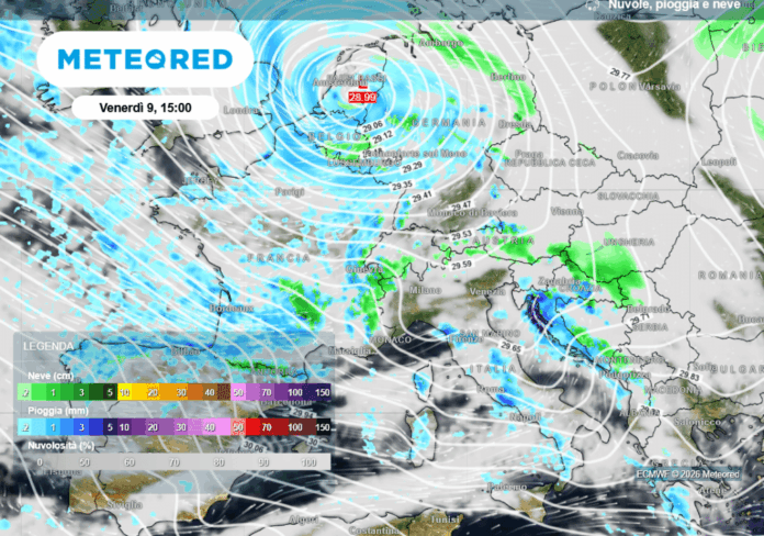 Al Nord Italia le temperature potrebbero salire leggermente, con precipitazioni sotto forma di pioggia e neve limitata in quota sulle Alpi. Al Centro-Sud potrebbero alternarsi fasi di tempo più stabile e mite, grazie all’espansione verso sud del cuneo dell’anticiclone delle Azzorre.