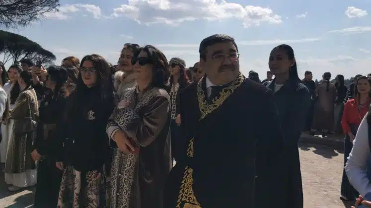 ROMA (ITALPRESS) – Una festa antichissima, che fa coincidere il passaggio dal vecchio al nuovo anno con l’equinozio di primavera: il Nauryz segna in Kazakistan il rinnovamento ed è accompagnato da canti, balli e cibo tradizionale. L’ambasciata a Roma ha deciso di invitare quest’anno, per l’occasione, 300 studenti kazaki che si trovano in Italia grazie agli accordi di cooperazione bilaterale nel settore dell’istruzione. Una presenza che simboleggia non solo il rispetto per la tradizione, ma anche la voglia di futuro di un Paese che ha appena tenuto un referendum per cambiare l’intera Costituzione. Il nuovo testo, votato dai cittadini il 15 marzo, mette al centro i diritti umani, lo sviluppo economico ma si concentra in particolare sulla risorsa rappresentata dalle nuove generazioni e sulla loro istruzione. “Il Nauryz è una festa antichissima in tutta l’Asia centrale, che significa rinnovamento della natura, del Paese, delle persone“, ha dichiarato all’agenzia Italpress l’ambasciatore del Kazakistan a Roma, Yerbolat Sembayev. “Questo equinozio simboleggia forse anche il rinnovamento dei nostri pensieri, per guardare al futuro con saggezza. Per questo facciamo questa festa per i giovani, gli studenti, che sono tantissimi in Italia, quasi 6.000. Una presenza resa possibile anche dall’aiuto del governo italiano e delle regioni, che forniscono dei sussidi per gli studenti kazaki”, ha aggiunto.