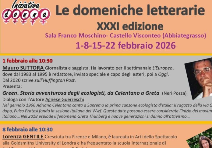 Torna anche quest’anno uno degli appuntamenti culturali più attesi del territorio: “Le domeniche letterarie”, la rassegna promossa dall’Associazione Iniziativa Donna in collaborazione con L’Altra Libreria, giunta alla XXXI edizione. Quattro incontri, in programma nelle domeniche di febbraio, porteranno ad Abbiategrasso autori e autrici di primo piano del panorama letterario e giornalistico italiano.