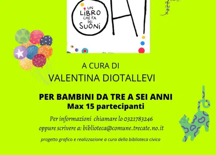 TRECATE – L’appuntamento è per le 10 del prossimo 15 aprile alla Biblioteca comunale. L’iniziativa, organizzata dalla Città di Trecate nell’ambito del progetto “Nati per leggere” del Bant Ovest Ticino, è riservata ai bambini dai 3 ai 6 anni per un massimo di quindici partecipanti.