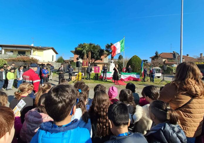 Gli alunni della primaria hanno cantato l'inno insieme ai loro insegnanti, agli assessori e ai rappresentanti delle associazioni d'Arma in un clima di festa.