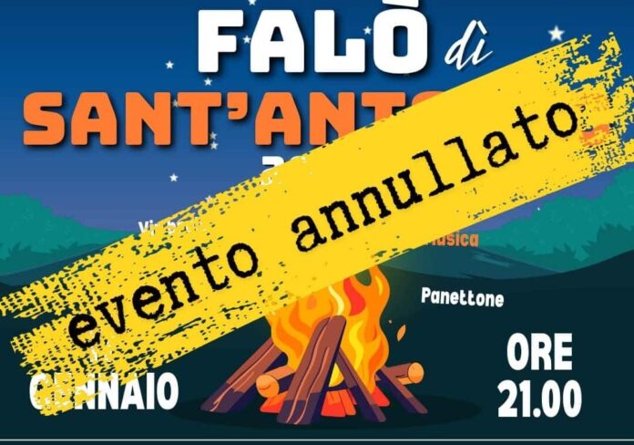 A causa delle avverse previsioni meteo, l’Amministrazione comunale comunica che il tradizionale Falò di Sant’Antonio, in programma domani sera, è annullato.