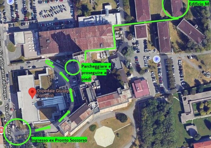 La Continuità Assistenziale è stata trasferita presso il piano terra dell’Edificio M, situato all’interno della Casa di Comunità. La struttura si trova nel perimetro dell’Ospedale di Magenta, nella zona posteriore del complesso.