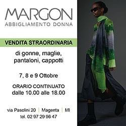 MAGENTA – Tre giorni dedicati ad una vendita straordinaria di abiti, camicie, gonne, maglie e pantaloni con orario continuato dalle 10 alle 18, presso la sede magentina di via Pasolini, 20. E’ quanto propone la Margon azienda specializzata nell’abbigliamento femminile. Margon con oltre mezzo secolo d’esperienza in questo comparto, opera sia a livello nazionale che internazionale attraverso il proprio marchio di prét-à-porter.