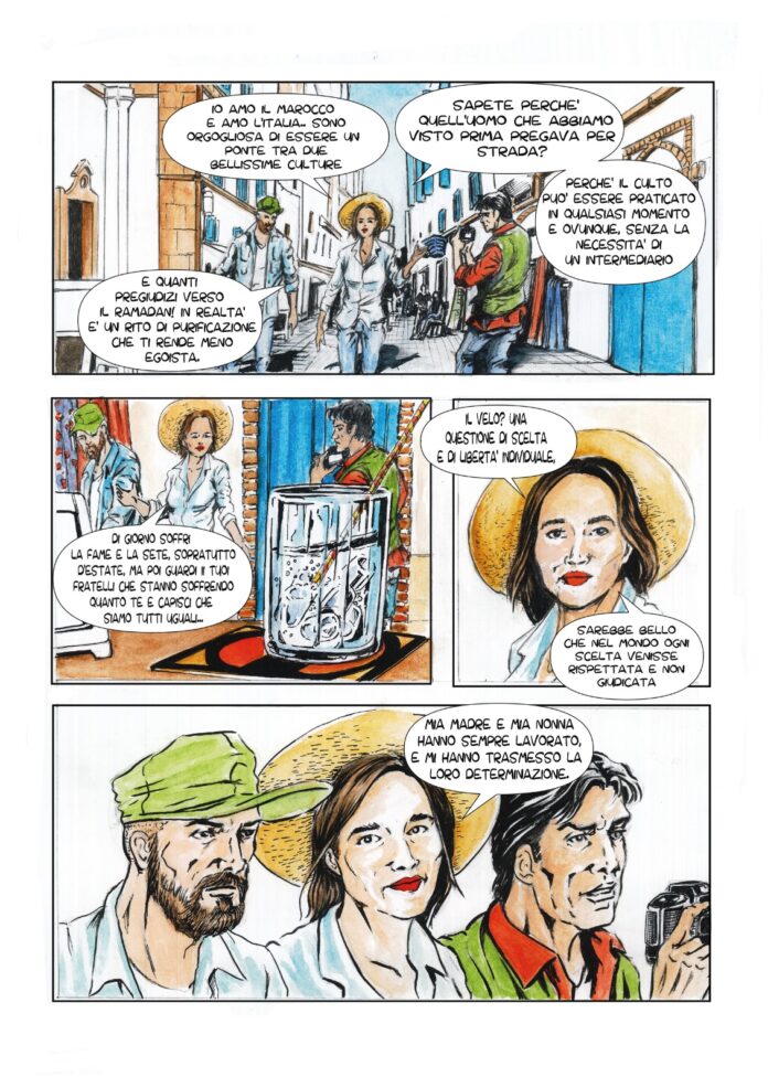 Otto radici nel deserto è il frutto di un lavoro collettivo: Bezzaz arricchisce il racconto di prospettive culturali diverse, mentre D’Addetta e Mitch DJ ne consolidano ritmo e struttura narrativa. Il risultato è un graphic storytelling che diventa strumento di testimonianza e riflessione, invitando a riconoscere una radice comune fatta di umanità, resilienza e speranza, al di là di confini e distanze.