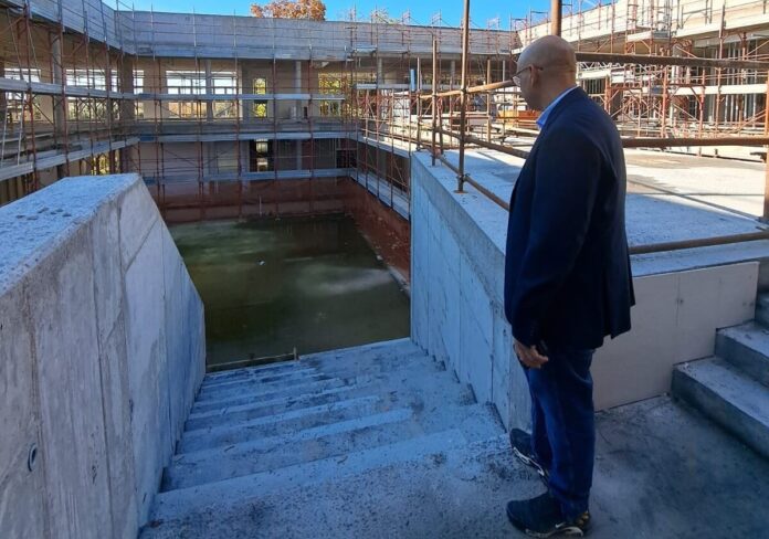 Durante la visita al cantiere si sono ben individuate le 15 classi moderne, luminose e funzionali, progettate per garantire il massimo comfort e accessibilità; l’aula cinema e l’aula arte, spazi dedicati alla creatività e all’espressione culturale; la grande scalinata dell’ingresso e qualla interna che permette l’accesso al giardino, pensate per favorire momenti di socializzazione e attività all’aria aperta; la palestra con gli spogliatoi e il sistema domotico di prossima installazione, per una gestione intelligente dell’energia.