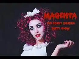 Ma Magenta è anche un personaggio ambiguo e non chiaro del mondo magico del musical “Rocky horror Pictures show”…di Richard O’Brien in tributo al b movie macabro …