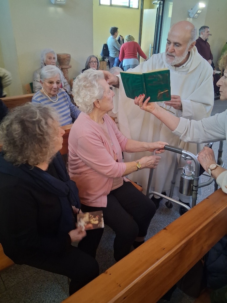 Don Diego, durante un’omelia capace di toccare le corde della memoria, ha guidato i presenti in un ideale “ripasso” del catechismo, spiegando con semplicità e profondità il valore dei dogmi e dei sacramenti. Al termine della celebrazione, un momento di forte impatto emotivo: l’Unzione dei malati impartita agli Ospiti e ai presenti, un gesto di vicinanza che ha trasformato il pomeriggio in un’esperienza di profonda condivisione.