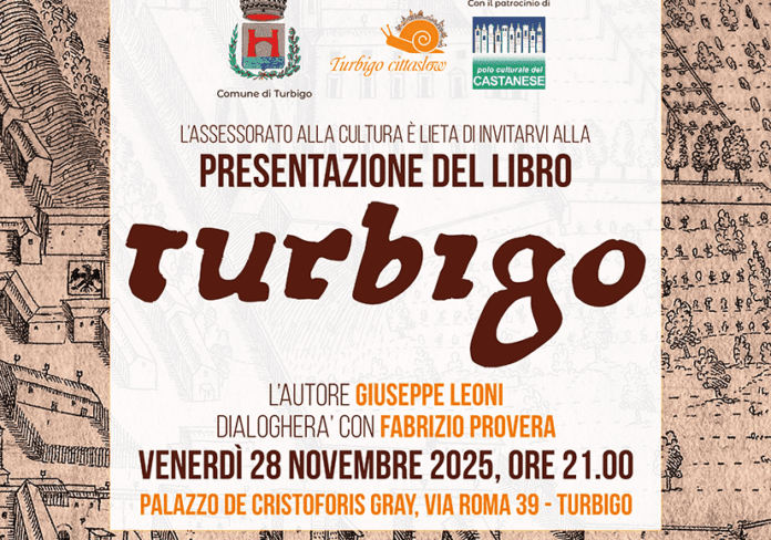 Venerdì 28 Novembre 2025, alle ore 21.00 presso la sala delle vetrate del Palazzo de Cristoforis-Gray, l’Assessorato alla Cultura del Comune di Turbigo, con il patrocinio del Polo Culturale del Castanese, presenterà al pubblico il nuovo libro “Turbigo” scritto e curato dal dott. Giuseppe Leoni, molto conosciuto nel paese per la competenza e la passione per la storia locale.
